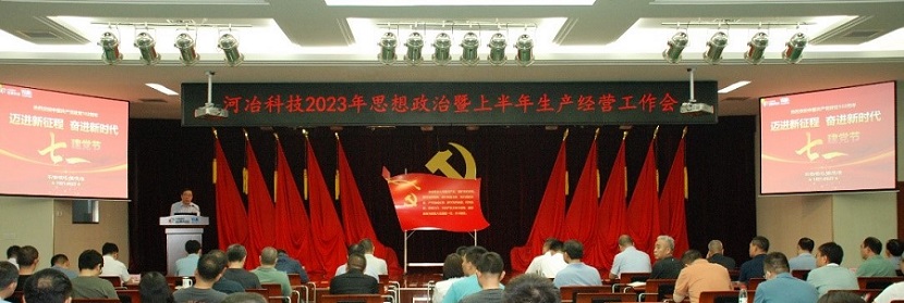 在建黨102周年之際,河冶科技2023年思想政治暨上半年生產(chǎn)經(jīng)營(yíng)工作會(huì)于7月7日在公司多功能廳召開(kāi)。參加會(huì)議的有公司黨委委員、經(jīng)理層、中層干部、黨支部書(shū)記、部門骨干、采購(gòu)營(yíng)銷人員、團(tuán)委委員和子公司河冶住商黨總支委員及經(jīng)理層人員等共計(jì)130余人。會(huì)議由公司黨委副書(shū)記、常務(wù)副總經(jīng)理梁敬斌主持。
